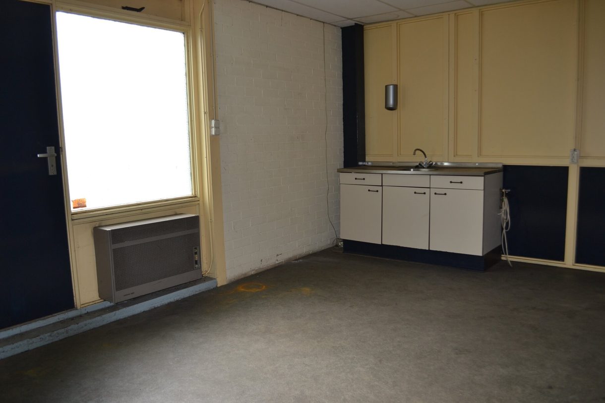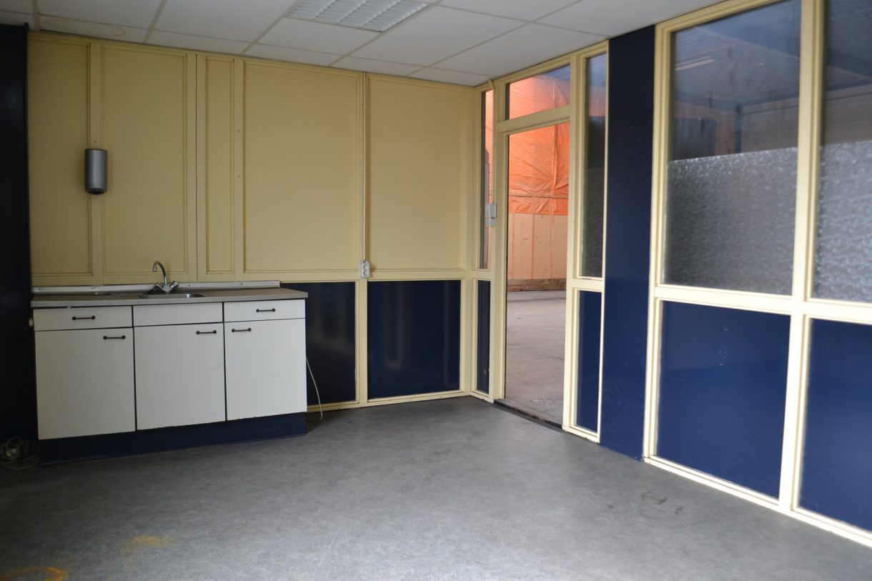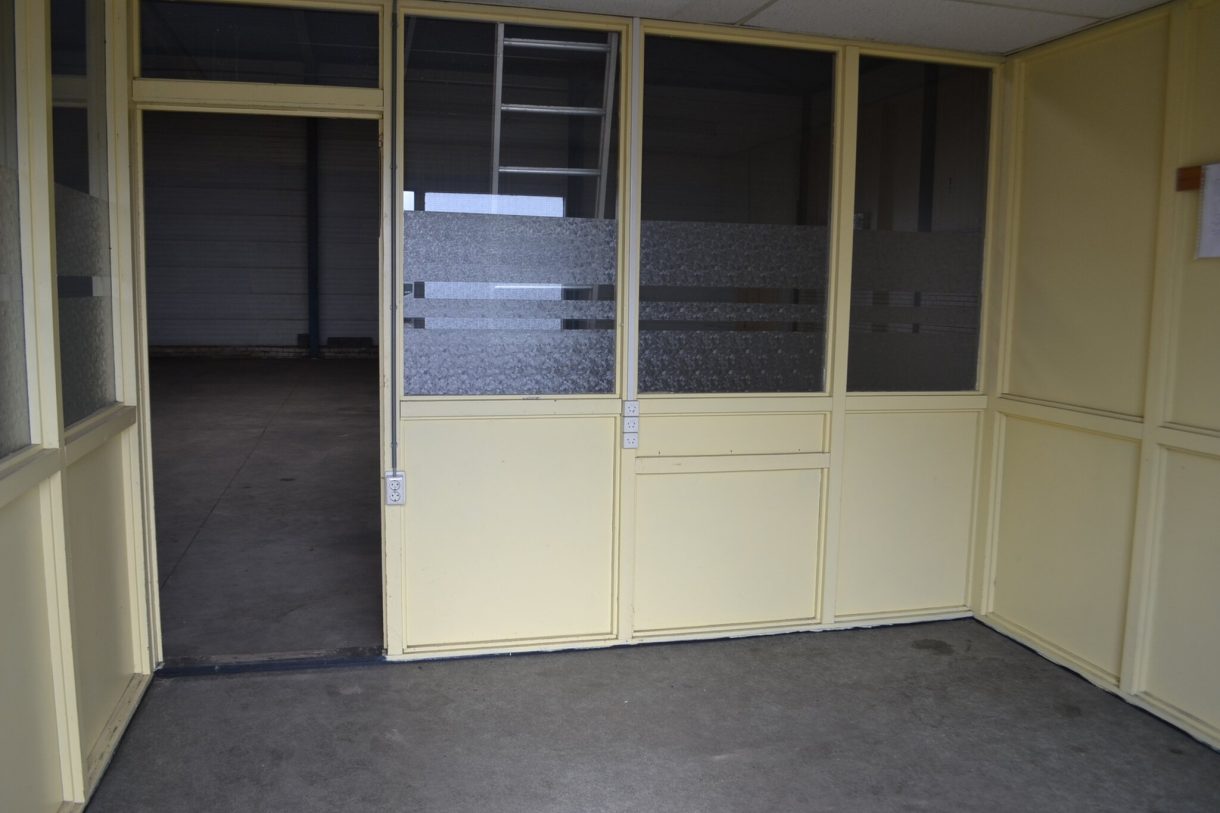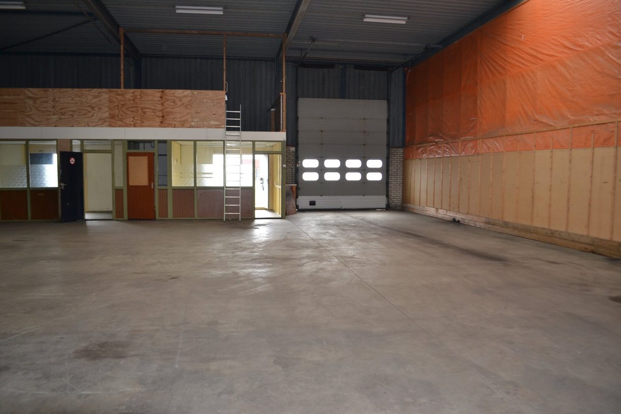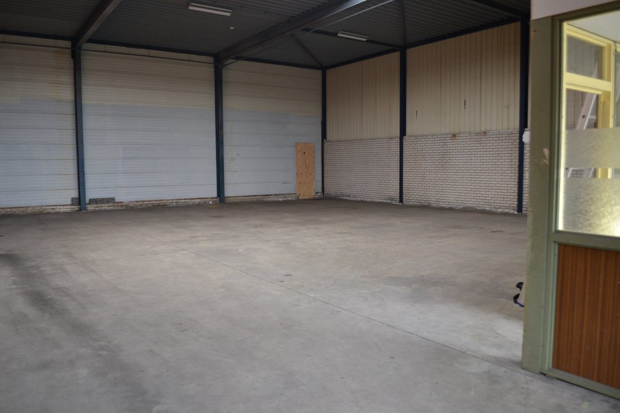 Indeling: o.a.: entree, toiletruimte, kleine kantoorruimte (ca 15 m²) met keukenblok voorzien van boiler, magazijn/bedrijfsruimtes met overhead-deur (4.00m x 4.50m).