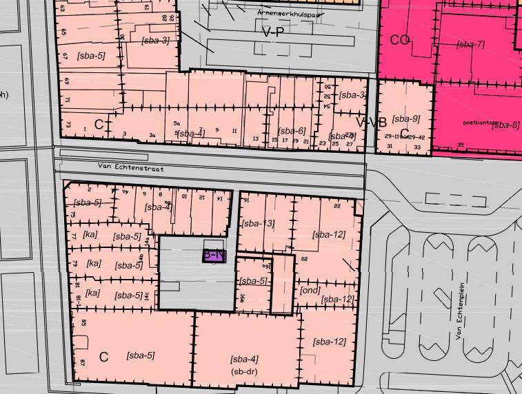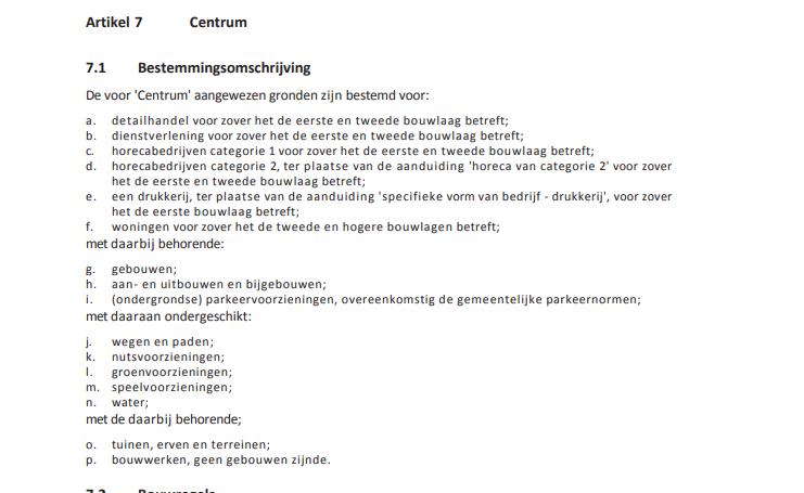 Bestemming: “centrum” detailhandel, dienstverlening, horecabedrijven categorie 1, woningen voor zover het de tweede en hogere bouwlagen betreft.