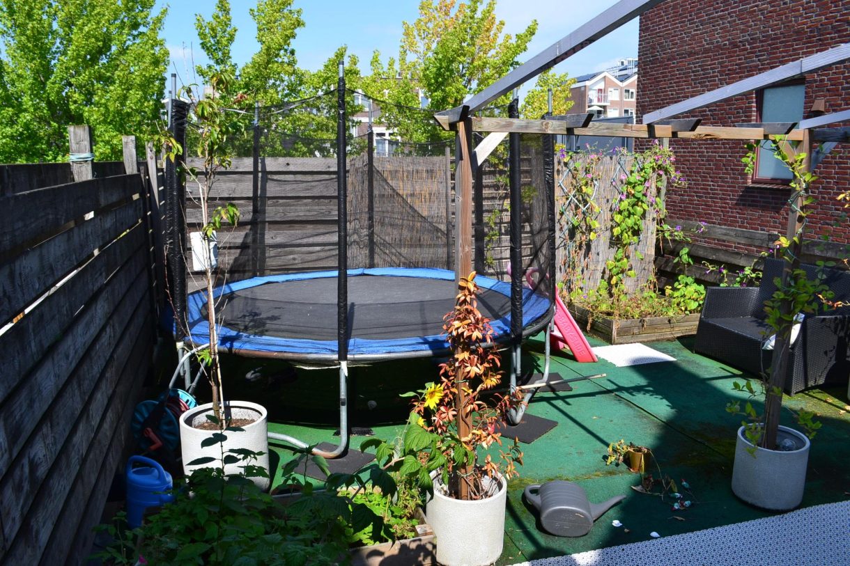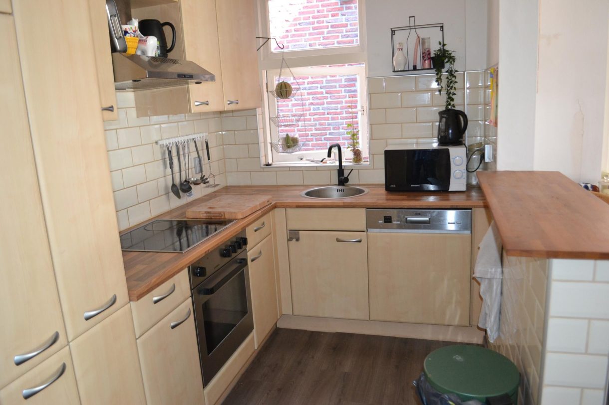 – de vloeroppervlakte van de bovenwoning (twee laags) met dakterras ca. 95 m², als volgt onderverdeeld; hal/entree met trapopgang, toilet, natte ruimte met douche en bad meubel, L-vormige woonkamer met een openkeuken, op de verdieping drie slaapkamers, de zolder is bereikbaar middels een vlizotrap;