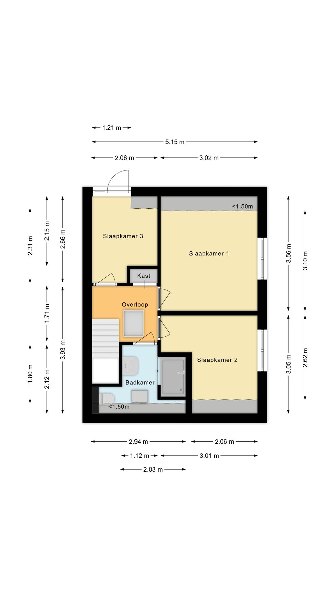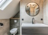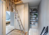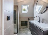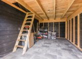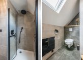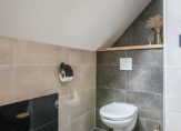 Op de verdieping een overloop met vaste kast, drie slaapkamers en een badkamer met 2e toilet, douche en wastafelmeubel. Tenslotte over de gehele verdieping een royale bergzolder welke via een vlizotrap te bereiken is.
