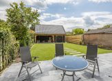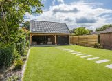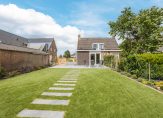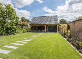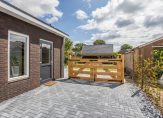 Achter het huis is het heerlijk vertoeven in de besloten tuin, welke is ingericht met sierbestrating, een gazon en een houten tuinberging met royale verdieping en overkapping. De tuin is achterom bereikbaar en afgesloten met een fraai hek. Verder ligt er aan de voorzijde een nette tuin met beplanting en de royale oprit.