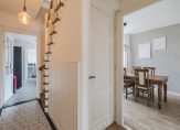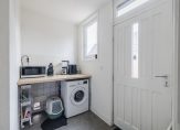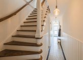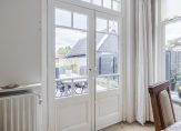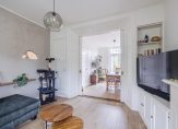 Via de hal/entree kom je in de sfeervolle woonkamer en suite, met aan de voorzijde een zitkamer en aan de achterzijde een eetkamer, gescheiden door karakteristieke suitedeuren. De eetkamer aan de achterzijde biedt via de openslaande tuindeuren toegang tot het zonneterras en de fraai aangelegde achtertuin. In de tuin bevindt zich een vrijstaande houten schuur met een ruime overkapping. Verder beschikt de begane grond over een moderne keuken voorzien van diverse inbouwapparatuur, een bijkeuken met witgoedaansluiting, een toilet en provisieruimte in de vorm van een kelder.