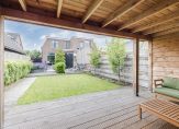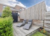 De besloten achtertuin op het oosten is in 2022 volledig gerenoveerd. De tuin is netjes aangelegd en is voorzien van een zonneterras en een vrijstaande houten schuur met overkapping.
