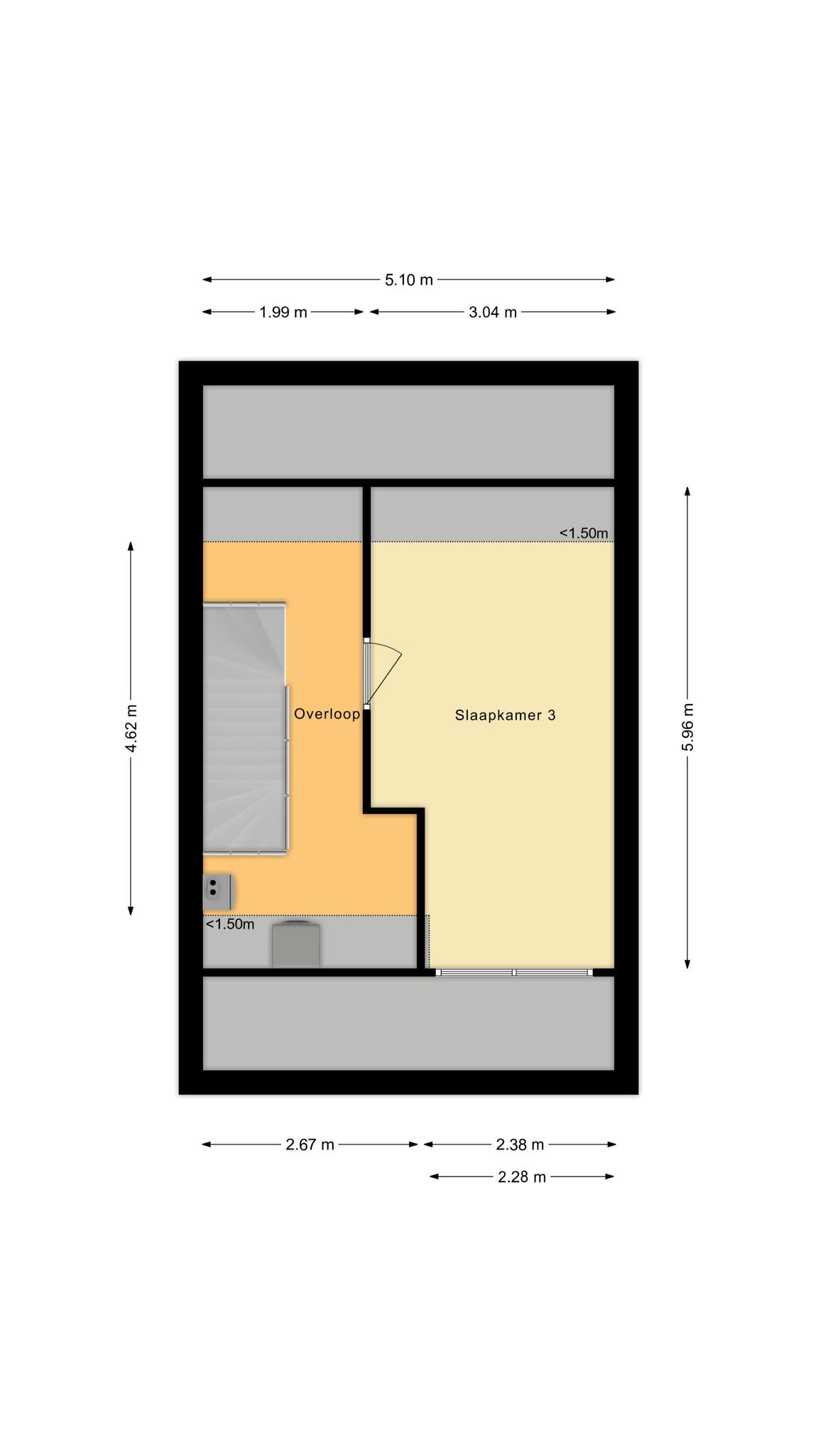 * Multifunctionele ruimte op zolder die geschikt is als slaapkamer, kantoor of hobbyruimte;