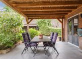 De ruime tuin van ca. 500 m² ligt rondom de woning en beschikt over meerdere terrassen. De hoofdtuin is op het oosten gelegen, voorzien van een mooie overkapping en bereikbaar via een achterom. Hoewel er momenteel geen garage is, is er wel voldoende ruimte om er een te realiseren. Aan de zijkant van het huis is een eigen oprit met plek voor meerdere auto’s.