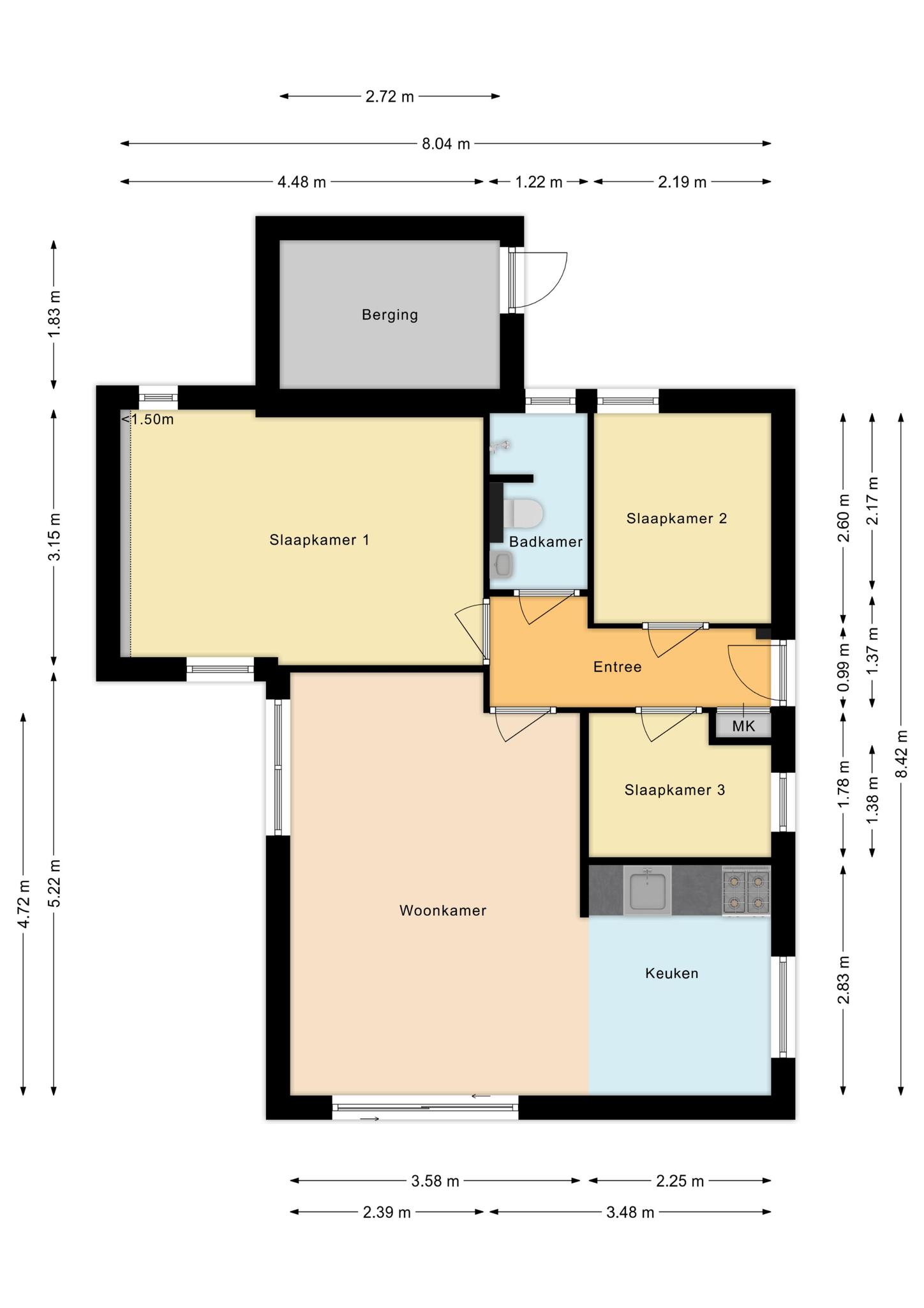 Rondom de woning hebt u volop ruimte in de nette tuin met een zonneterras, royaal gazon en bosschage. De aangebouwde berging is buitenom bereikbaar en verder is er ruimte voor het parkeren van uw auto op eigen terrein.