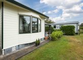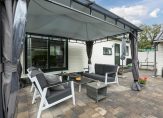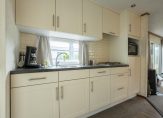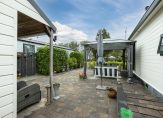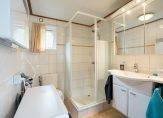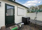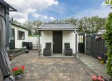 Rondom het chalet hebt u volop ruimte in de nette tuin met zonneterras en bosschage voor uw privacy. Er staat tevens een vrijstaande berging (kunststof) voor uw tuingereedschap en fietsen. Er is mogelijkheid voor het parkeren van twee auto’s binnen de slagbomen en verder voldoende ruimte op het openbare parkeerterrein.