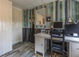 Op de begane grond de ruime keuken met houtkachel en nette keukeninrichting met apparatuur zoals een 5-pits fornuis met oven en verder de trapopgang met een provisieruimte; sfeervolle woonkamer met houten vloer en een 2e houtkachel, een aparte studeer-/werkkamer en een eetkamer met provisieruimte in de aanbouw. Vanuit de keuken toegang tot een gang met toiletruimte v.v. een toilet en fontein, een moderne badkamer met 2e toilet (hangcloset), douchecabine, dubbele wastafelmeubel en designradiator; tenslotte twee slaapkamers waarvan de hoofdslaapkamer voorzien is van 2 vaste kasten, airconditioning en openslaande deuren naar een veranda.