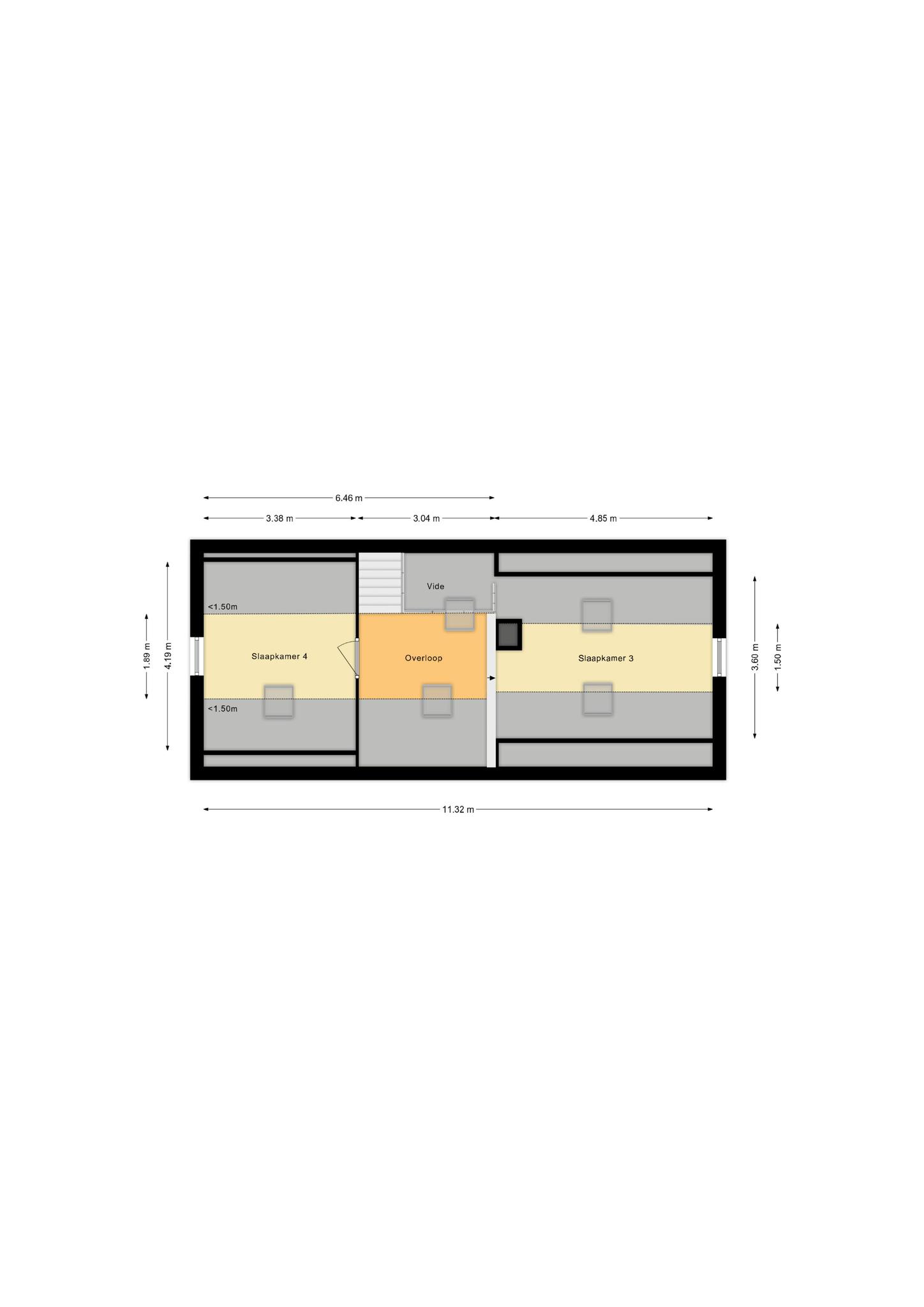 Op de verdieping een open vide/overloop, de derde slaapkamer en een open ruimte waar eventueel een vierde (slaap)kamer gerealiseerd kan worden.