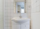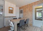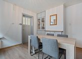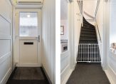 Hal/entree met trapopgang en meterkast. Vervolgens aan de straatzijde een voorkamer en links van de entree de eetkamer met trappenkast. Aansluitend de dichte keuken met inbouwapparatuur, badkamer voorzien van douche en badmeubel. Ten slotte een bijkeuken met witgoedaansluitingen, toiletruimte (hang + fontein) en binnendoor naar de berging met achterom. Op de verdieping een overloop, 2 slaapkamers met vaste kasten en 2e toilet.