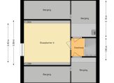Op de begane grond de hal/entree, meterkast en toiletruimte; royale doorzon woonkamer met open trap naar de verdieping; Dichte keuken met eenvoudige keukeninrichting; aangebouwde berging met achterom naar de tuin.