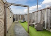 De tuin heeft een onderhoudsarme achtertuin op het westen welke achterom bereikbaar is. Aan de voorzijde een kleine voortuin met bestrating en beplanting. Het parkeren van de auto kan zonder parkeervergunning aan de voorzijde.