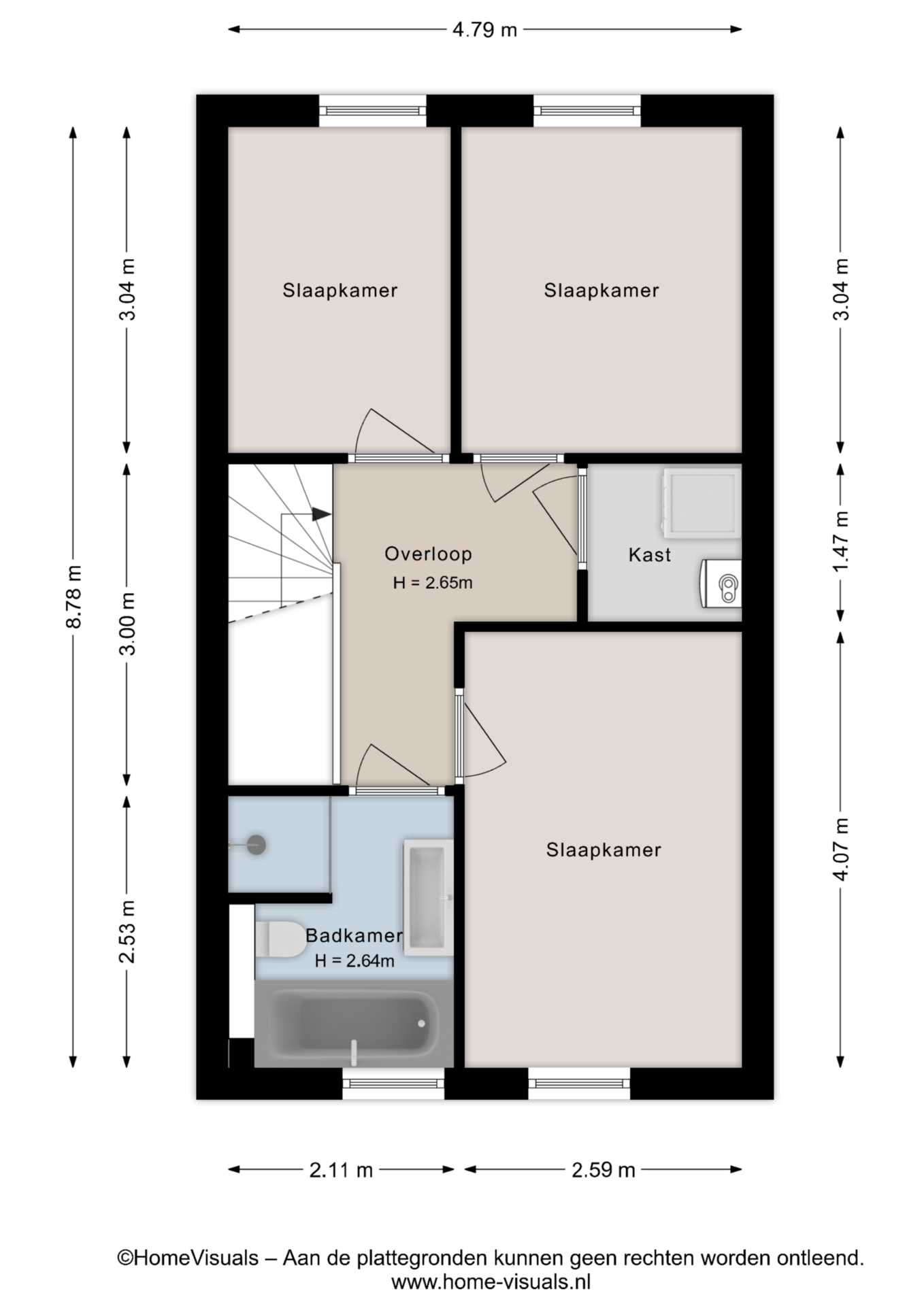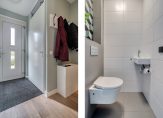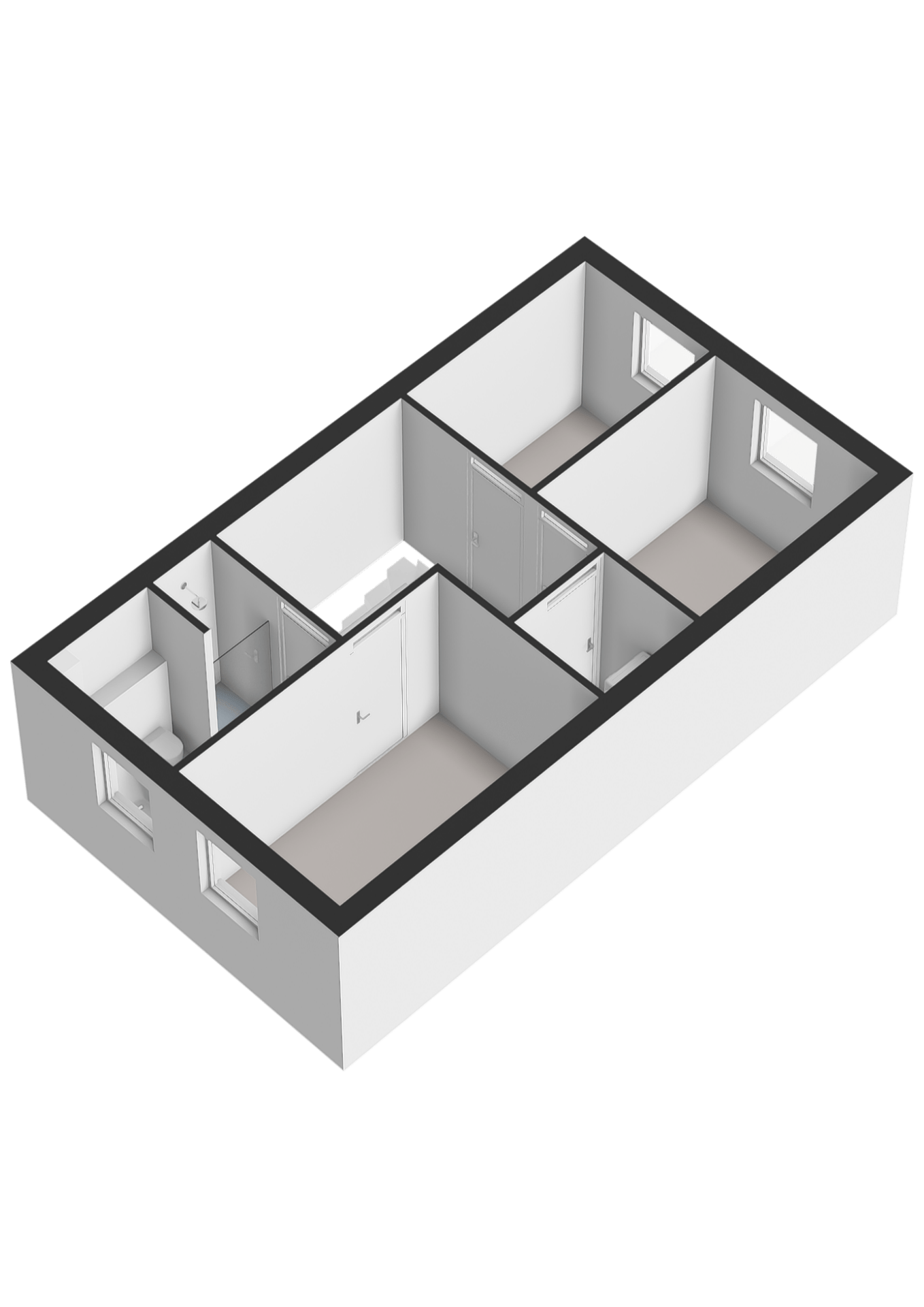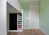 Verdieping: overloop met airco-unit. Drie slaapkamers, waarvan één goed te gebruiken is als hobbykamer, kinderkamer, speelkamer of thuiskantoor. Verder is er een praktische wasruimte met CV-opstelling, witgoedaansluitingen en bergruimte. De badkamer is compleet uitgevoerd met een inloopdouche, ligbad, wastafelmeubel en tweede toilet.