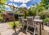 De achtertuin biedt veel privacy, is op het zuiden gelegen en beschikt over een achterom. Momenteel is de tuin ingericht met een heerlijk terras en beplanting. Tevens is een stenen berging met elektra aanwezig voor fietsen en tuinspullen.