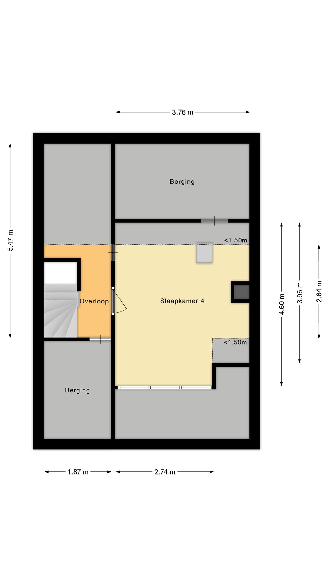 De ruime zolderverdieping is middels een vaste trap bereikbaar naar een open bergruimte met knieschot. Op deze verdieping bevindt zich tevens de 4e slaapkamer met royale dakkapel.