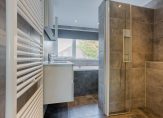 Op de verdieping een overloop, drie slaapkamers, een berging, badkamer met douche, ligbad en wastafelmeubel en designradiator.
