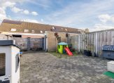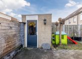 De achtertuin is gelegen op het zuidoosten, voorzien van tegels en beschikt over een vrijstaande stenen berging en een achterom. Aan de zijkant van de woning is voldoende openbare parkeergelegenheid beschikbaar.