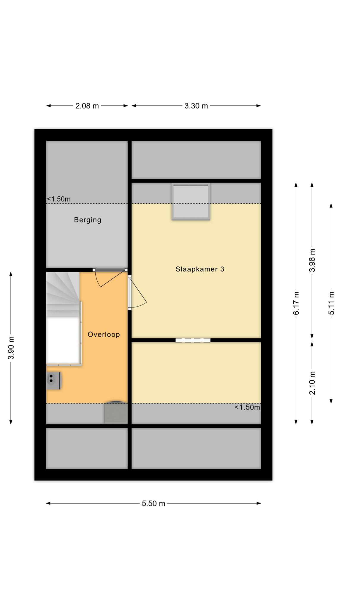 De ruime zolderverdieping is middels een vaste trap bereikbaar naar een overloop en de derde slaapkamer.