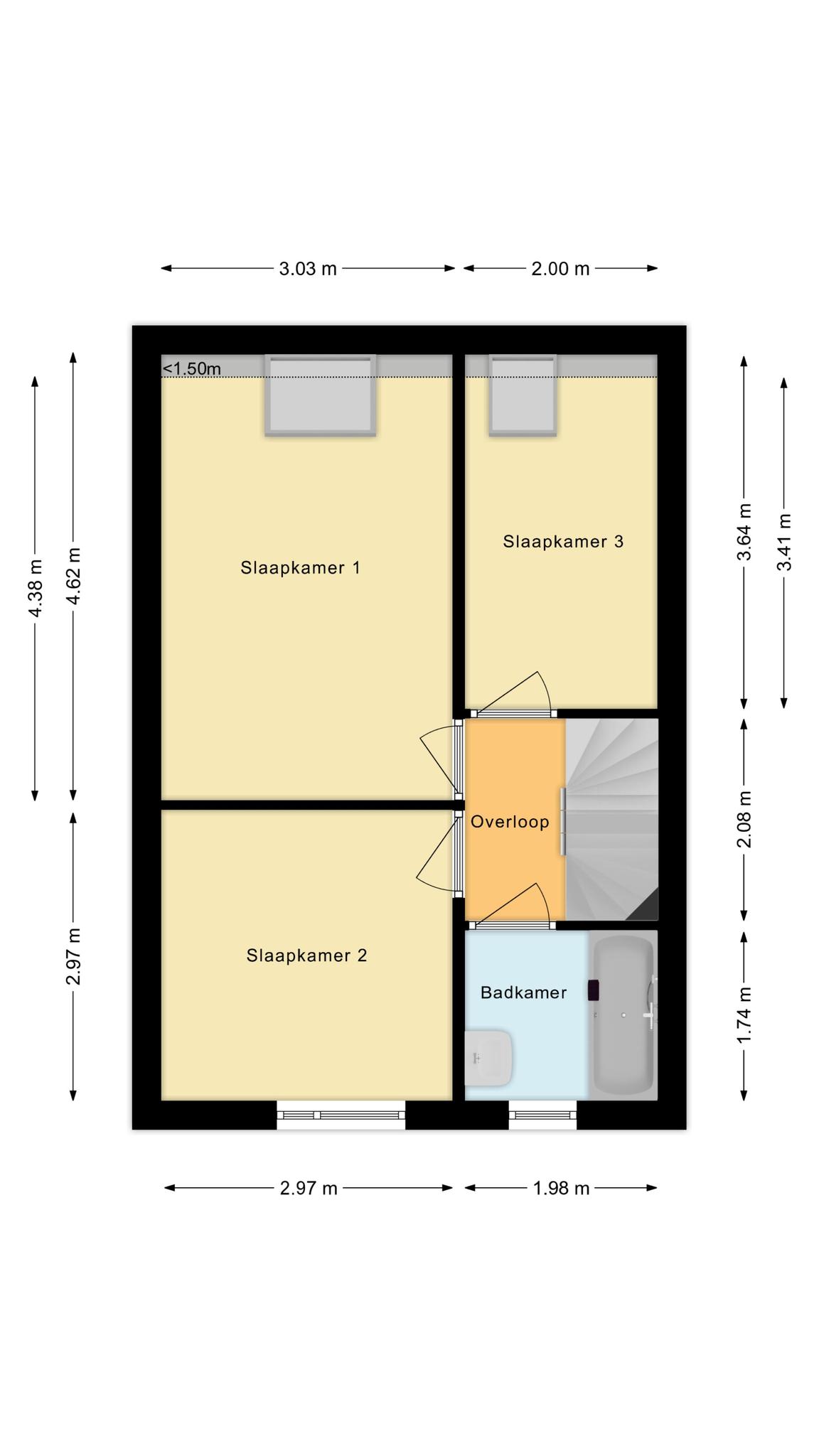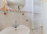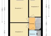 Op de 1e verdieping een overloop, drie slaapkamers en een badkamer met ligbad en wastafel.