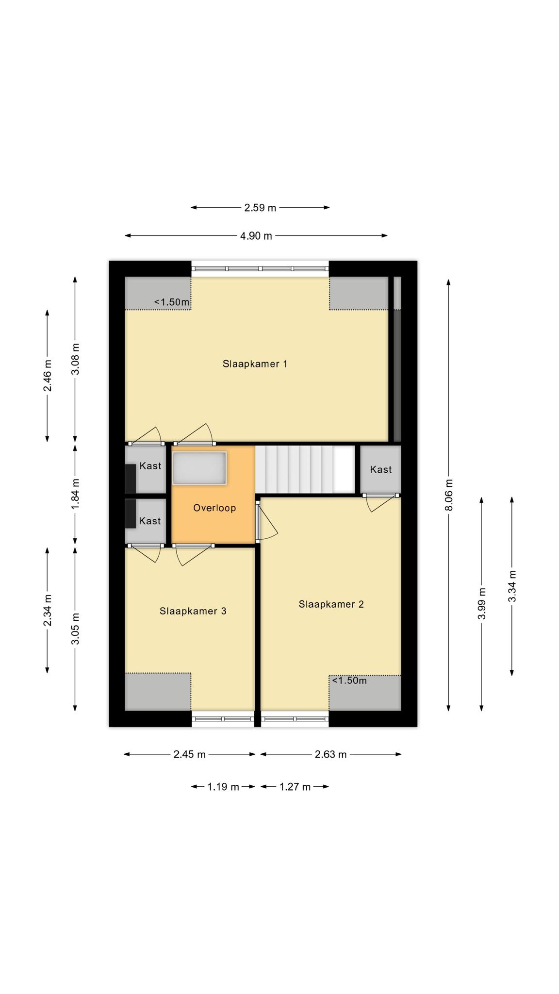 Op de verdieping de overloop met drie slaapkamers en vlizotrap naar de vliering voorzien van dakraam en opstelplaats Cv-ketel.