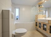 Op de verdieping een overloop, drie slaapkamers, een badkamer met bad/douche, wastafelmeubel en toilet.
