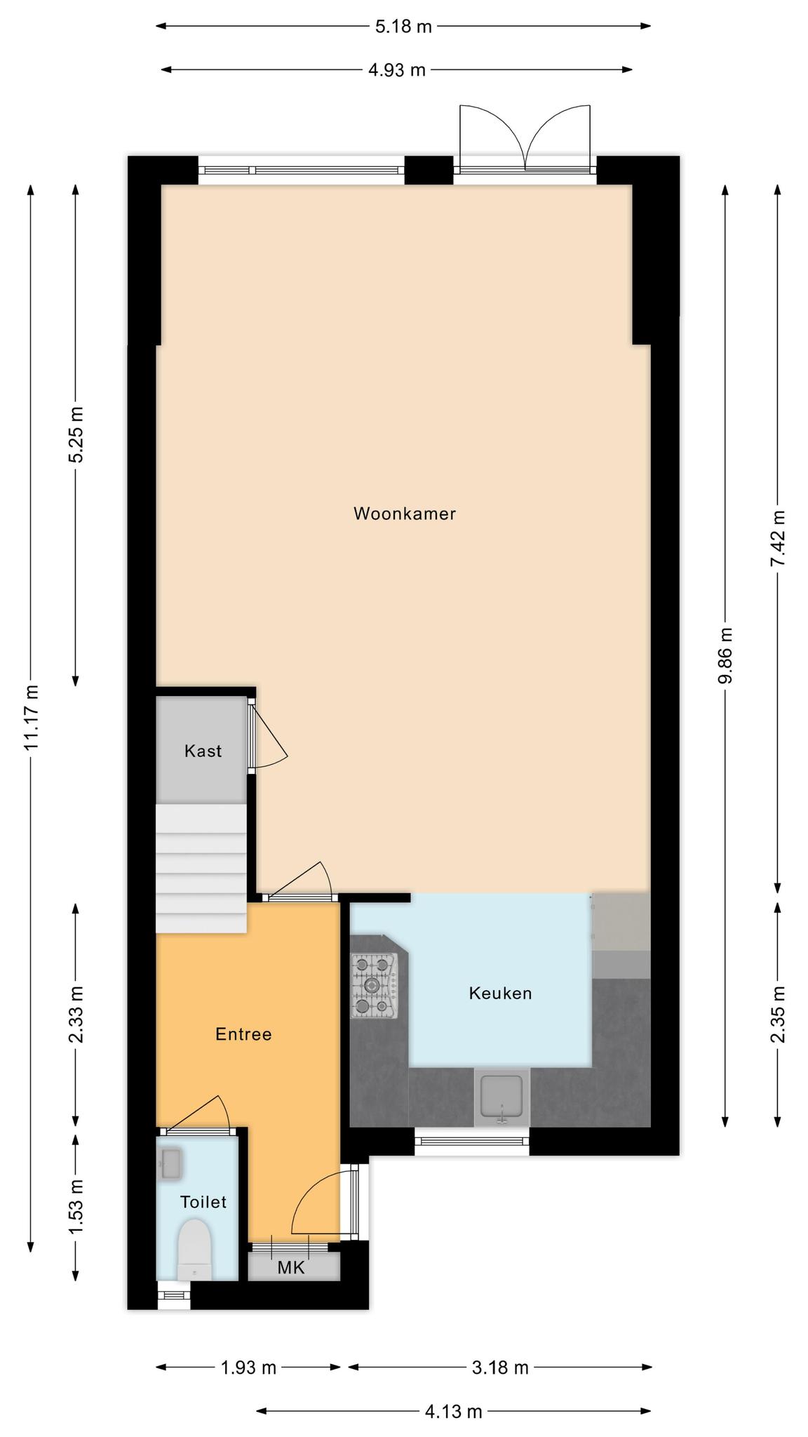 Begane grond o.a. hal/entree, toiletruimte; Meterkast en trapopgang, een heerlijke lichte woonkamer voorzien van vloerverwarming; Open keuken voorzien van diverse inbouwapparatuur.