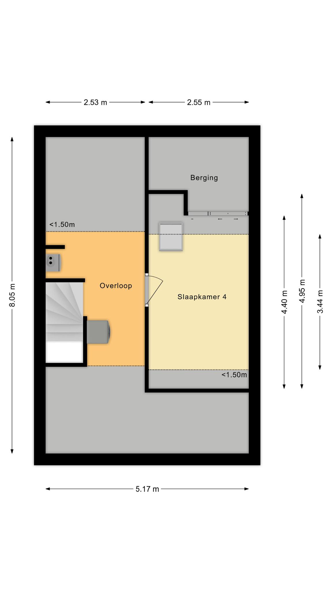 De ruime zolderverdieping is middels een vaste trap bereikbaar naar een vierde slaapkamer.