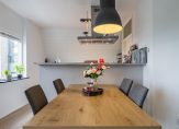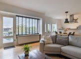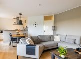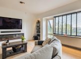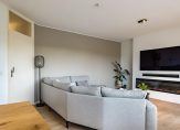 – Lichte woonkamer met cinewall en haard, toegang tot het balkon en halfopen keuken voorzien van een gasfornuis, afzuigkap, combi-oven en koelkast;