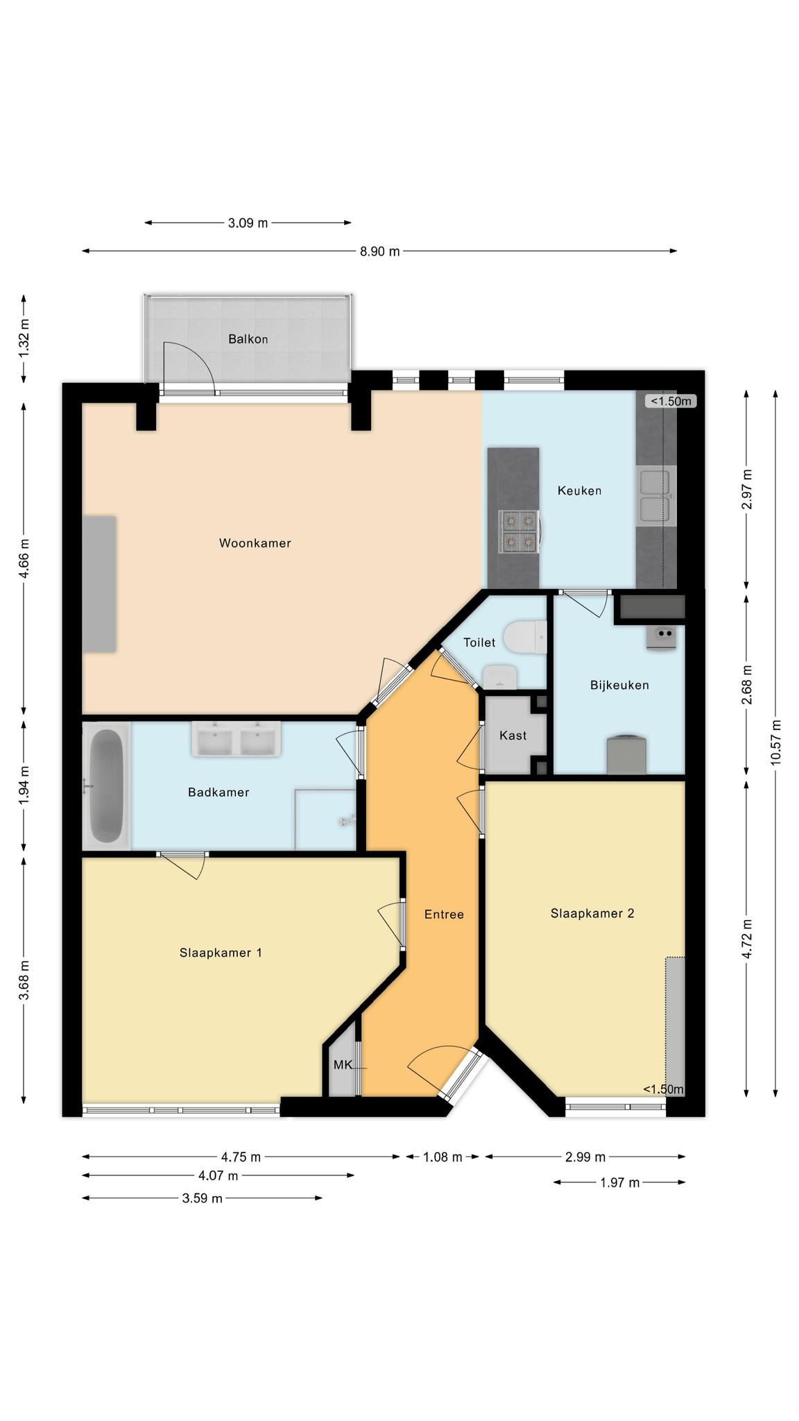 – Bijkeuken/berging met aansluiting voor de wasmachine;