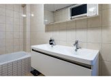 – Badkamer met ligbad, douche en dubbele wastafel met meubel;