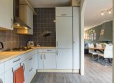 – Keuken voorzien van koel-vriescombinatie, 4-pits gaskookplaat, vaatwasser, wasmachine aansluiting, airco en achterom.