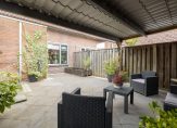 Aan de voorzijde beschikt de woning over een keurig aangelegde onderhoudsvrije voortuin en in de straat is er ruimte om de auto openbaar te parkeren. De achtertuin is tevens onderhoudsvrij uitgevoerd met verschillende mogelijkheden om deze naar eigen wens in te vullen. Verder is de achtertuin voorzien van een overkapping en schuur met achterom.