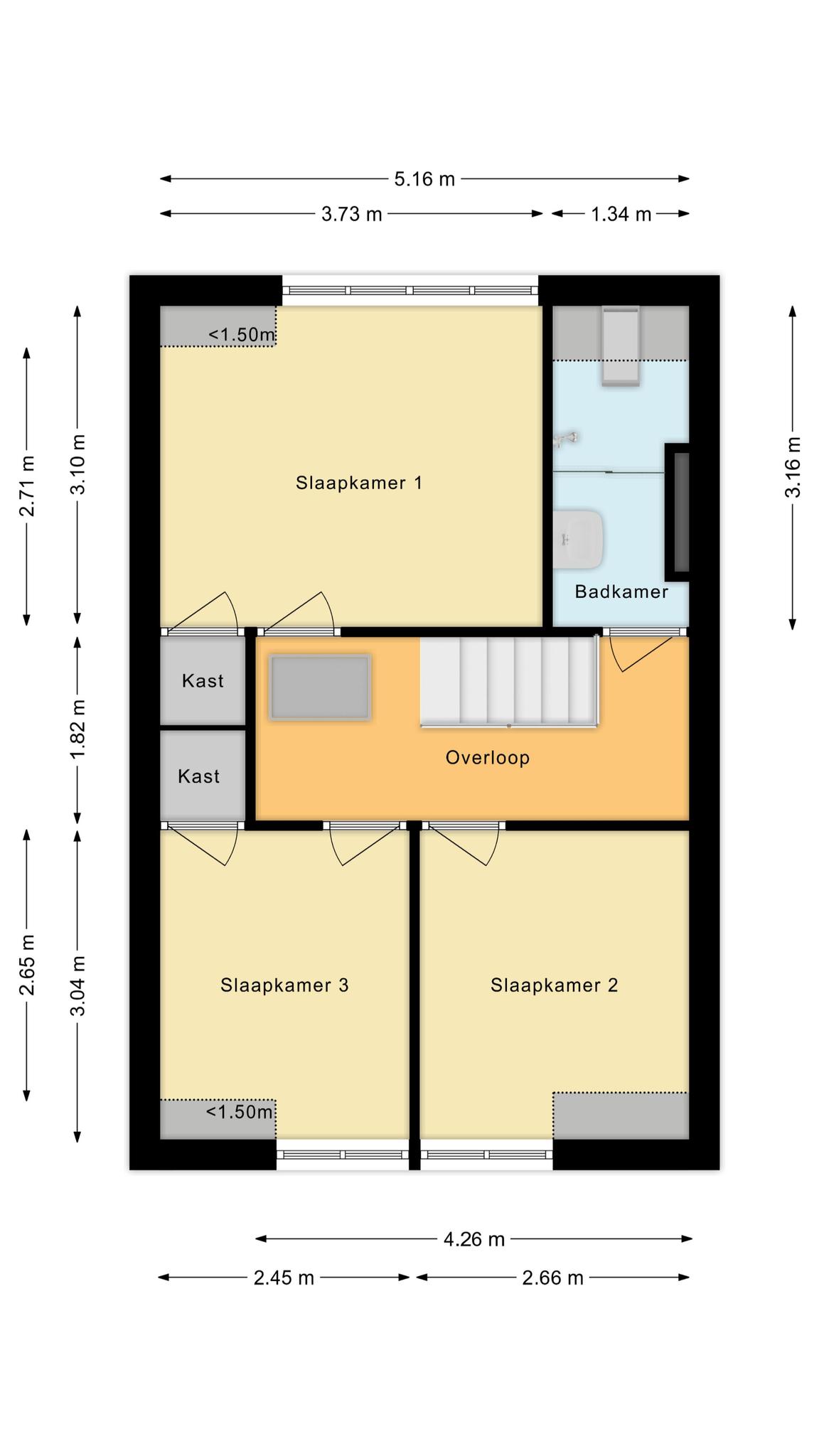 – 3 slaapkamers waarvan 2 met vaste kastruimte;