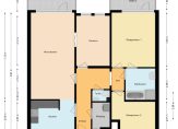 Ruime entree/hal met bergkast/CV-ruimte met wasmachineaansluiting en toilet, lichte woonkamer (ca. 26 m²) met zonnig balkon (ca. 8 m²), halfopen keuken, (ca. 10 m²), slaapkamer/kantoor (ca. 11 m²) welke bereikbaar is vanuit de woonkamer én vanuit de hal. Vanuit de entree/hal heeft u verder toegang tot de slaapkamer (ca. 16 m²) met 2e balkon (ca. 5 m²), de badkamer (ca. 6 m²) en een kamer/berging (ca. 10 m²). Inpandige berging (ca. 5 m²) in de kelder.