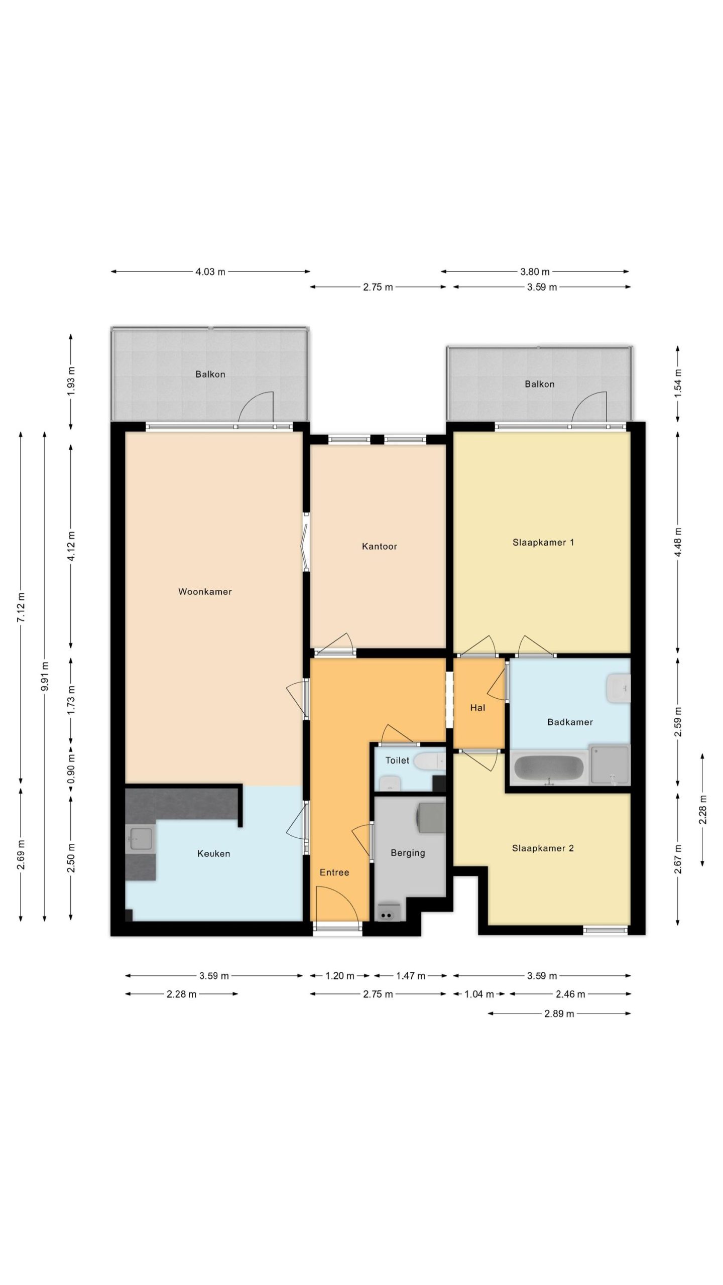 – Twee balkons;