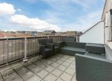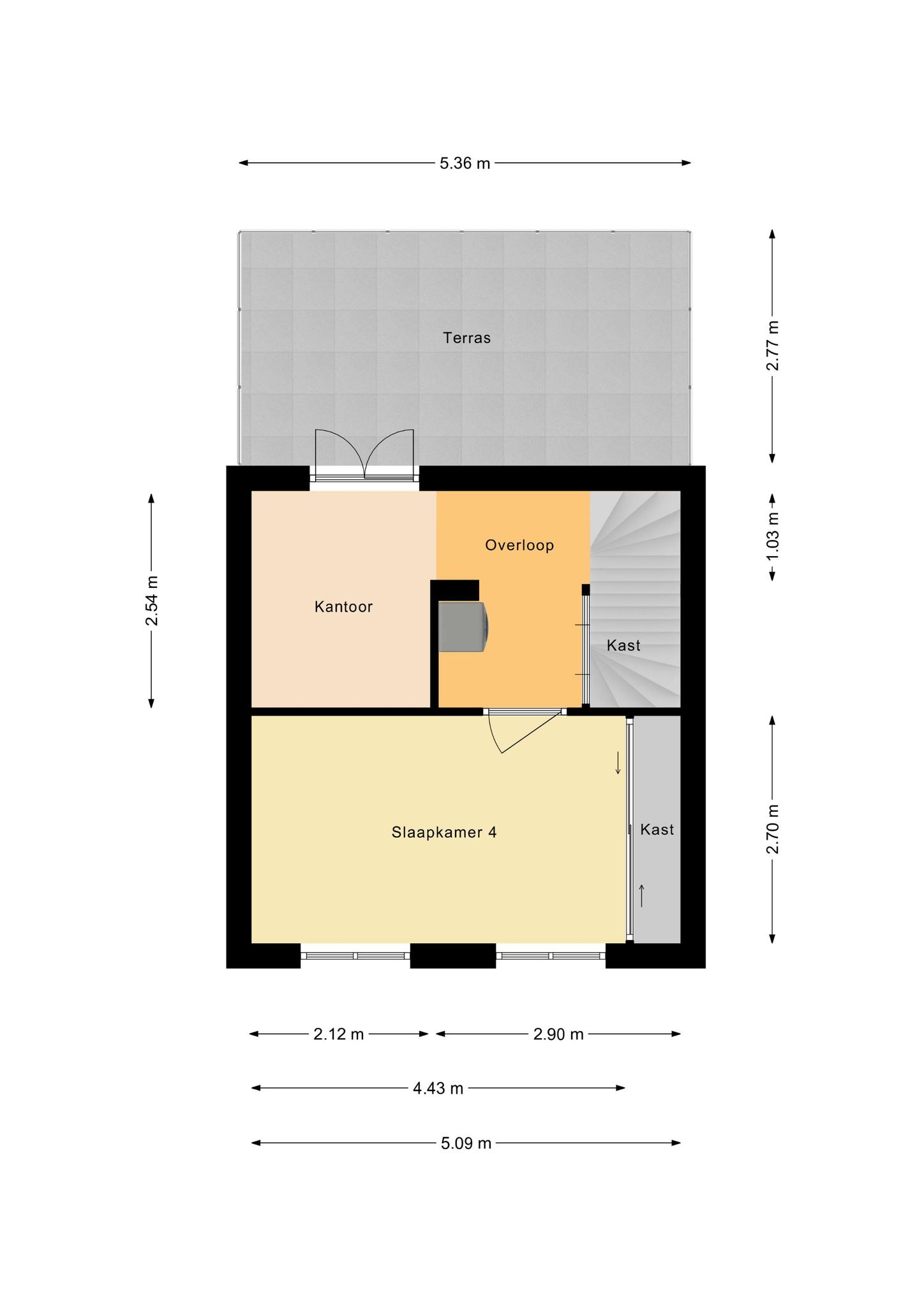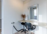 Via een vaste trap bereik je de tweede verdieping, waar een ruime overloop met wasmachineaansluiting toegang biedt tot een dakterras (gelegen op het zuiden), aparte kantoorhoek en de vierde slaapkamer.