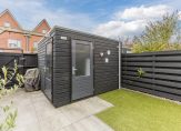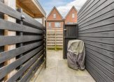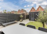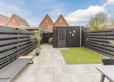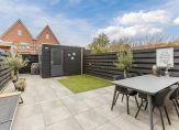 De achtertuin biedt volop privacy en is onderhoudsvriendelijk aangelegd met sierbestrating en een vrijstaande berging. Aan de voorzijde bevindt zich een compacte, eveneens onderhoudsarme voortuin, terwijl er in de straat voldoende openbare parkeergelegenheid is.