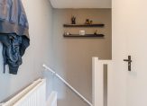 De woning beschikt over een eigen oprit en een entree op de begane grond met meterkast en trapopgang naar de eerste verdieping. Op de overloop/hal bevindt zich een toiletruimte met hangend toilet en fonteintje. De woonkamer geeft toegang tot het balkon aan de voorzijde en sluit mooi aan op de open keuken. De moderne badkamer is voorzien van wastafelmeubel, inloopdouche en designradiator. Daarnaast is er op deze verdieping een slaapkamer met schuifkastenwand en een vaste trap naar de tweede verdieping. Op de tweede verdieping bevindt zich een overloop met witgoedaansluitingen, bergruimte en een tweede slaapkamer met dakraam en knieschotberging.