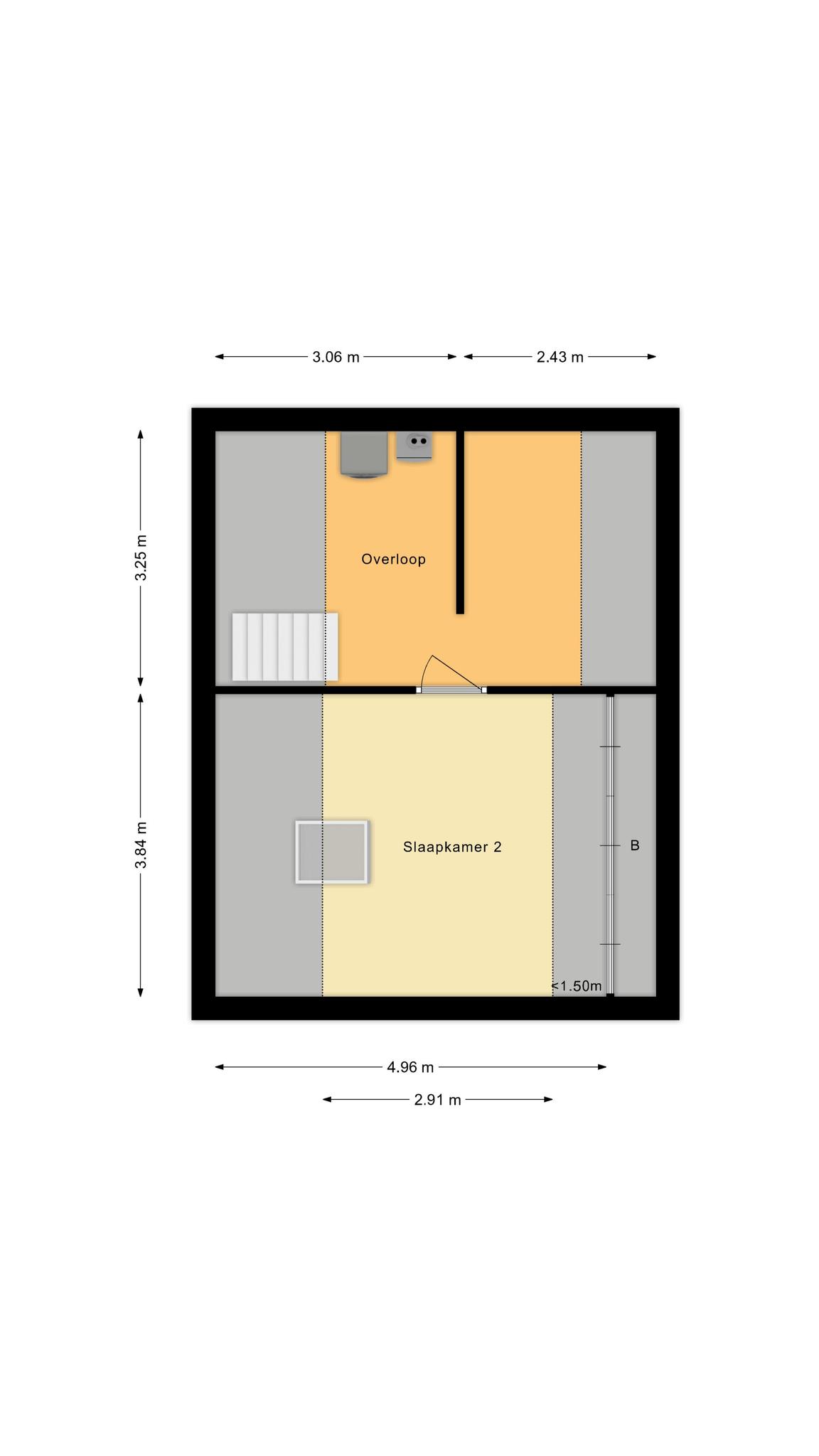 * Vaste trap naar de verdieping met een tweede slaapkamer;