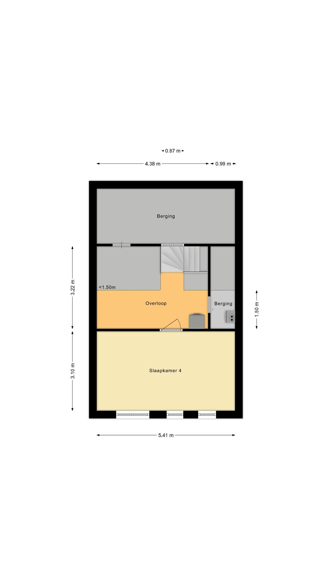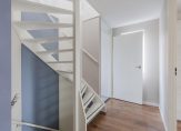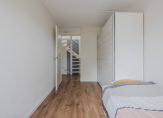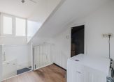 Op de tweede verdieping wederom een overloop met aansluiting voor de wasmachine, een royale vierde slaapkamer en extra bergruimte.