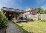 * Houten overkapping in de achtertuin;