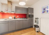 Hal/entree. Badkamer met douche, toilet, wastafel en wasmachineaansluiting. Woonkamer en open keuken met inbouwapparatuur (koel-vriescombinatie, combi-oven/combimagnetron), deur naar het balkon (op het zuiden), tevens is de slaapkamer bereikbaar vanuit de woonkamer.