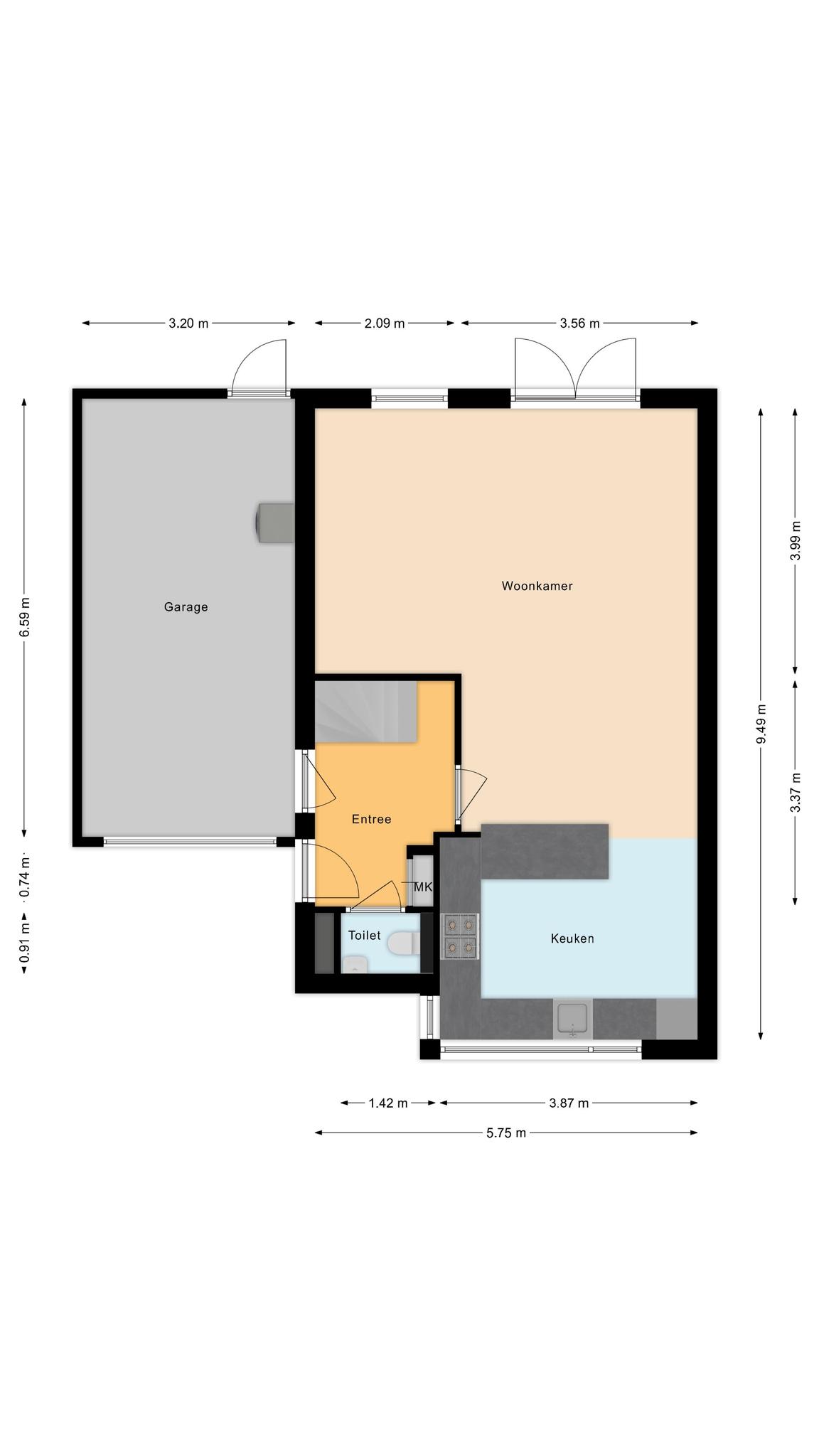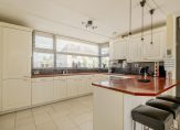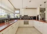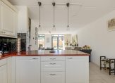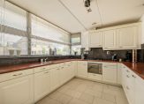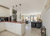 Op de begane grond o.a. de hal / entree, toiletruimte en binnendoor naar de garage met de wasmachineaansluiting; L-vormige, tuingerichte woonkamer voorzien van vloerverwarming en dubbel openslaande tuindeuren; Open keuken in U-vorm met lichte kleurstelling en diverse inbouwapparatuur.