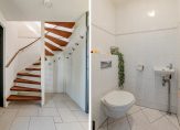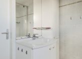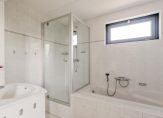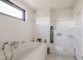Op de eerste verdieping de overloop, 3 slaapkamers en een geheel betegelde badkamer met ligbad, douchecabine, 2e toilet en wastafelmeubel.