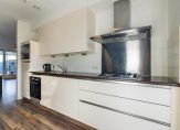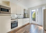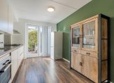 – Open keuken voorzien van 4-pits gaskookplaat, spoelbak, koelkast, oven en tuindeur naar de voortuin.