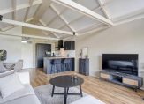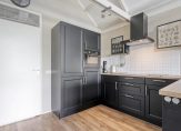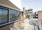 Vanuit de hal loop je door naar de open keuken, die beschikt over inbouwapparatuur waaronder een inductiekookplaat, combioven, koelkast, vriezer en vaatwasser. De keuken staat in verbinding met de woonkamer, hier zorgen de raampartijen en de schuifpui voor natuurlijk lichtinval en een directe verbinding met het balkon.