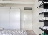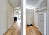 Bij binnenkomst via de entree bereik je de hal, die toegang biedt tot vrijwel alle vertrekken van het appartement. Direct aan de hal bevindt zich de meterkast, Cv-ruimte en een aparte bergkast. Aan de achterzijde van het appartement vind je de slaapkamer met ruimte voor een tweepersoonsbed. Naast de slaapkamer ligt de, in 2021 gemoderniseerde, badkamer die is voorzien van een toilet, inloopdouche, wastafel en wastafelmeubel.