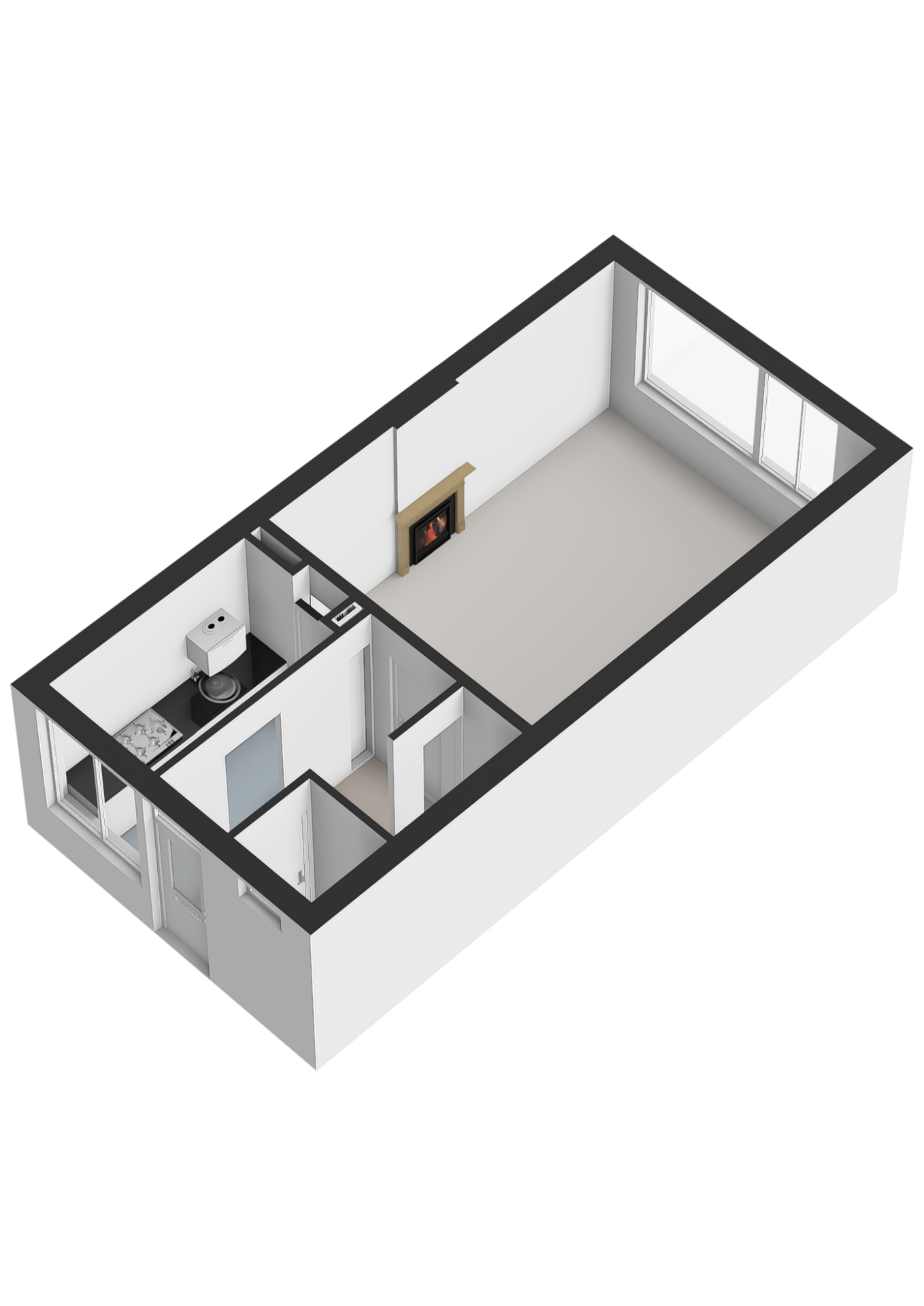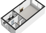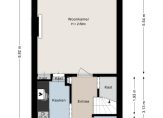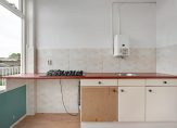 – dichte keukenruimte met inbouwkast en doorgeefluik naar de woonkamer;