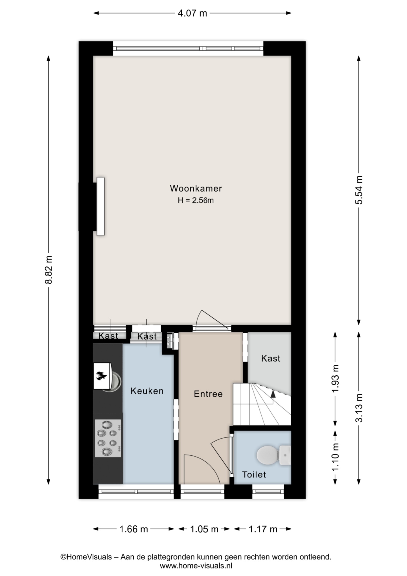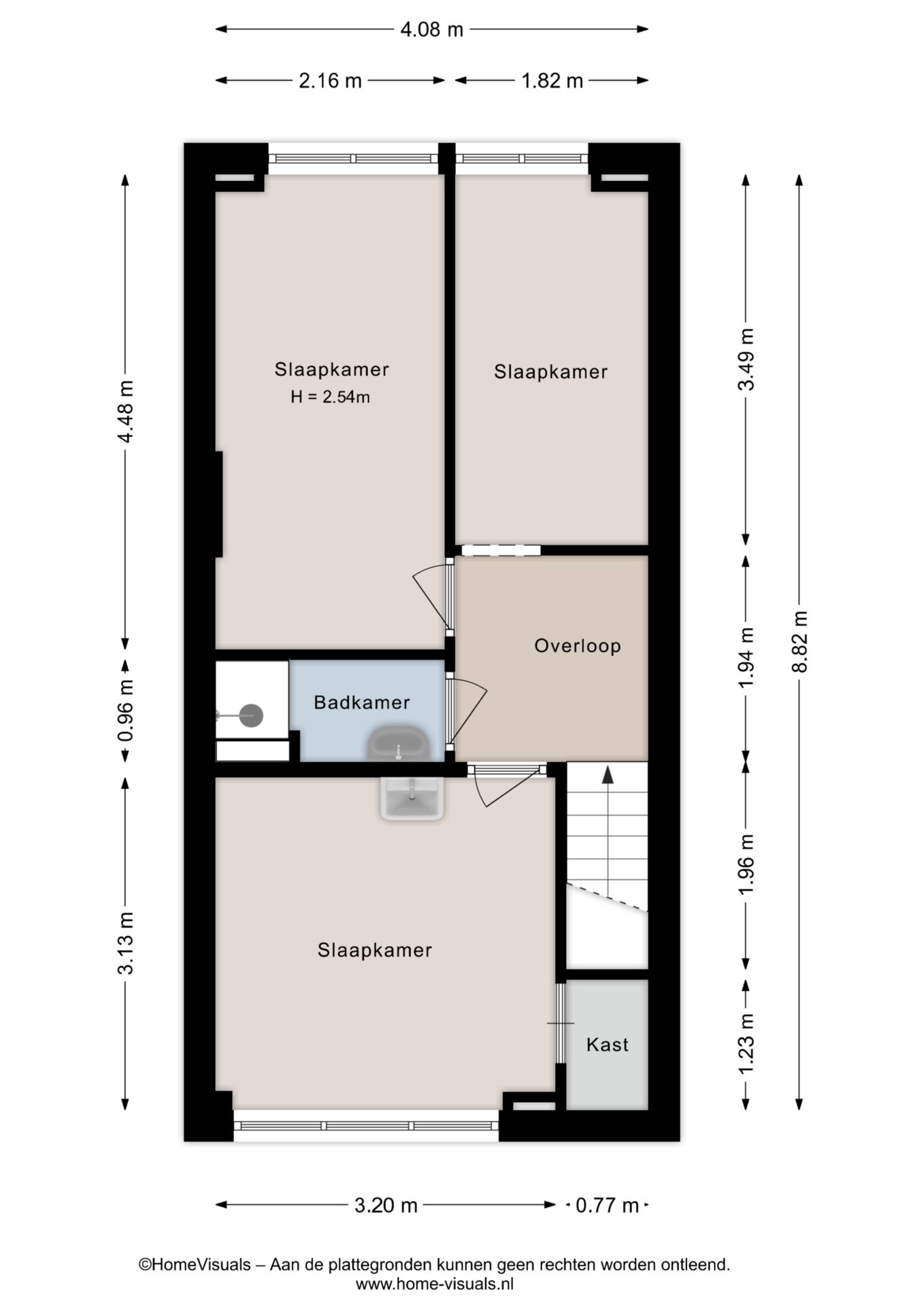 – hal/entree vanaf de galerij, meterkast, trapopgang, trapkast en toiletruimte;