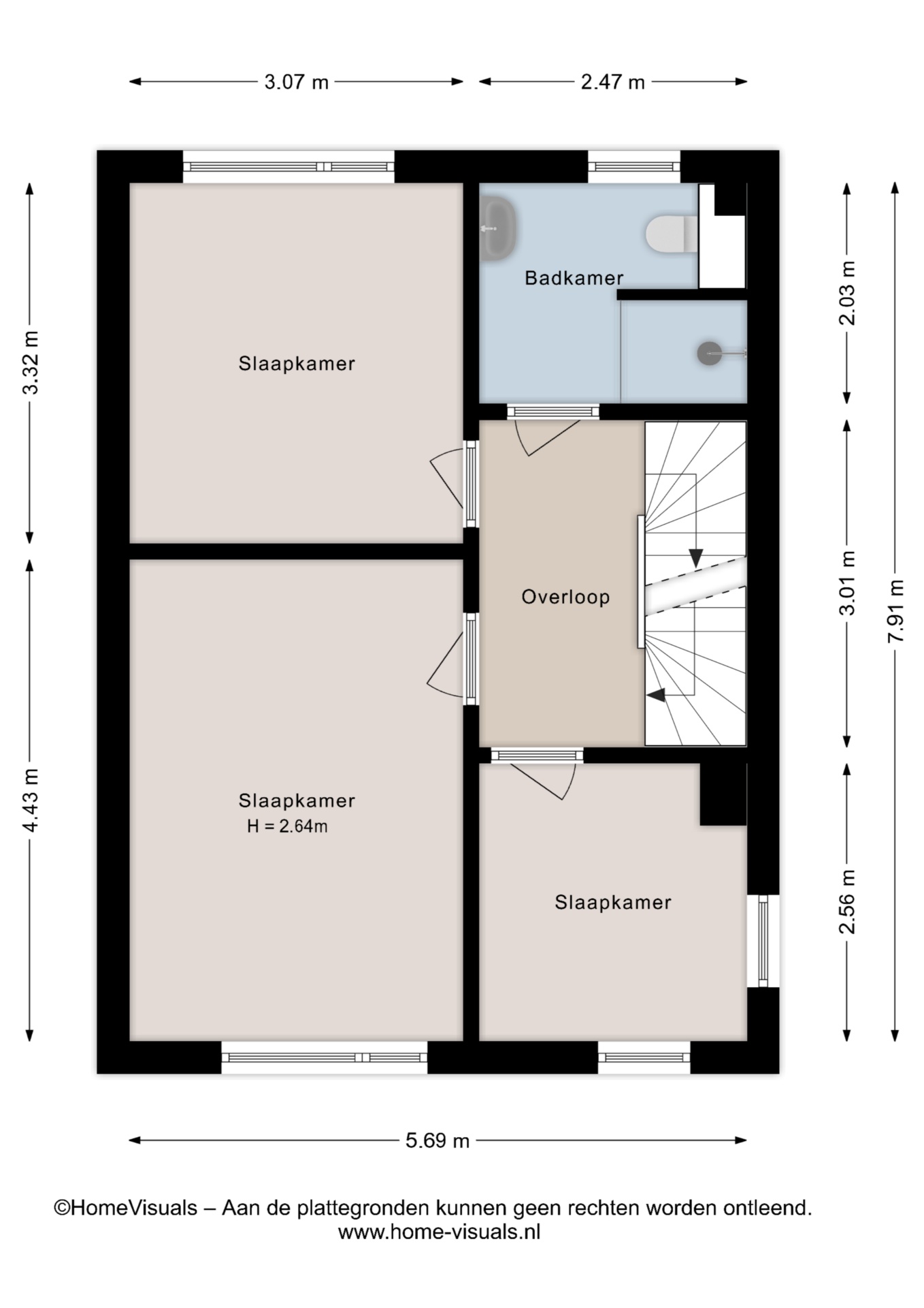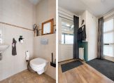 Op de verdieping de overloop; drie slaapkamers en een keurige badkamer voorzien van inloopdouche, wastafel en 2e toilet.